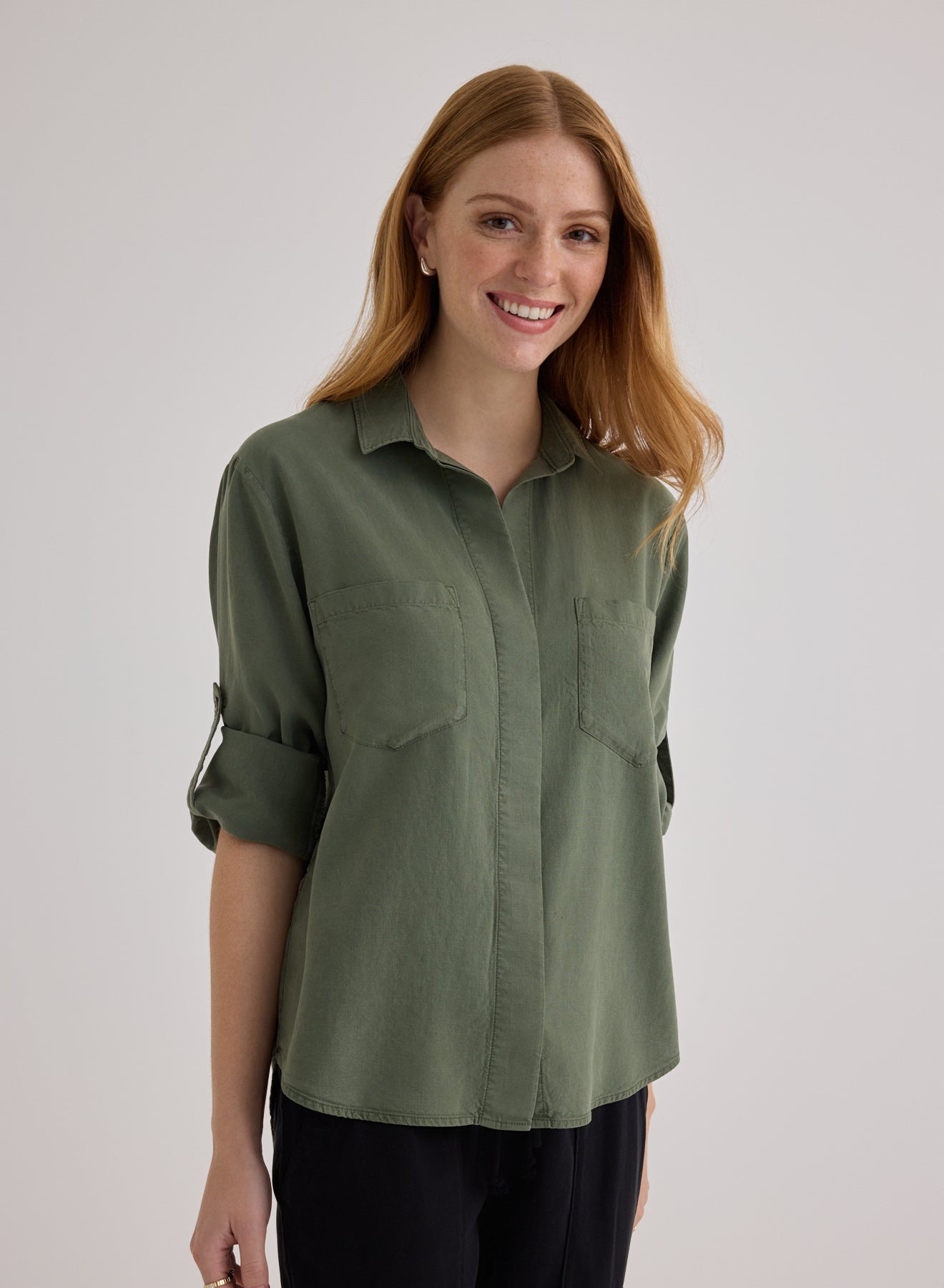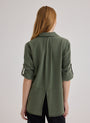 The split back button down is a signature favorite designed with front buttons, two chest pockets, roll tab sleeves, and a split back detail. This versatile top will surely become a staple in your wardrobe!