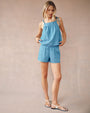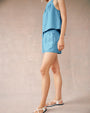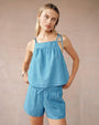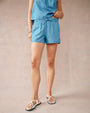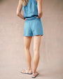 A refined upgrade from your average summer short, the Ruffle Edge Short in our Bermuda Blue wash blends the comfort of a drawstring pull-on short with the look of elevated denim.