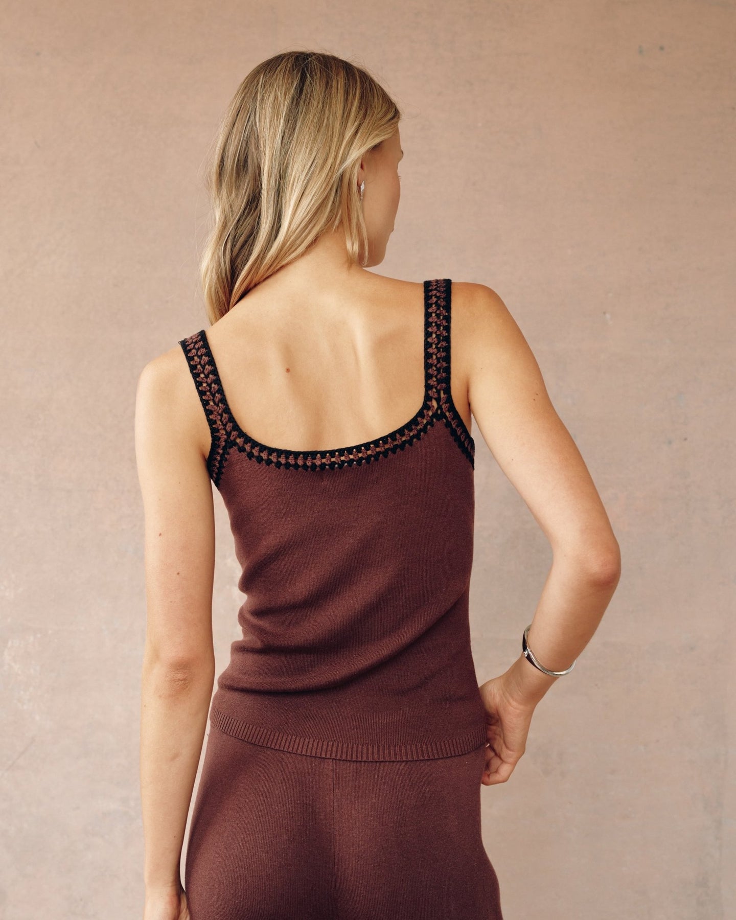 • The intricate crochet trim detail along the neckline and straps adds a handmade, summer feel to the minimalistic design.