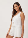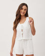 Ideal for layering, the Sleeveless Tie Front Top is designed for effortless style on hot summer days.
